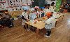 本日(24日)年長もも組が交流会で文蔵小に行きました。 今回は一日の生活の流れと、授業でどんなことをしているのか小学生たちに教えてもらい、授業や給食準備などを体験しました。