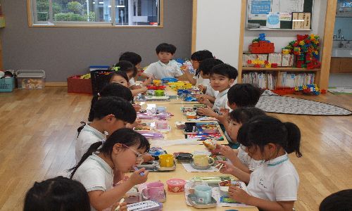 年中児「〇〇ちゃん玉子焼き入ってるね。私も入れてもらおう」