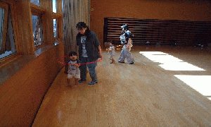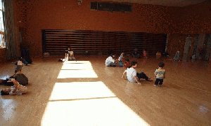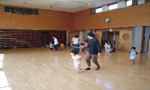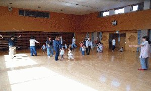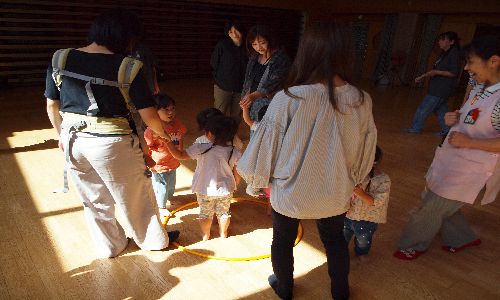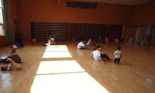 親子で手遊び、準備運動は体をしっかり動かして行えました。できないことは始めやらずに見ていることもありましたが、最後はみんな行うことができました。