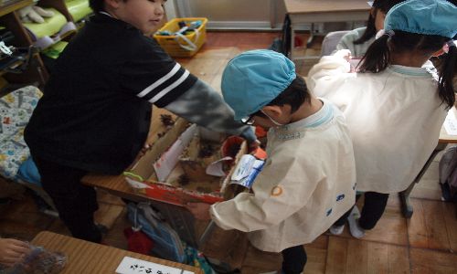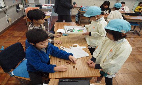 小学生が自作で季節を感じるおもちゃを作って、そのおもちゃで遊ぶことができました。