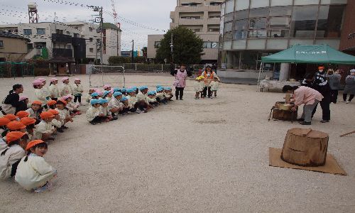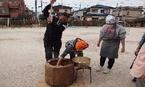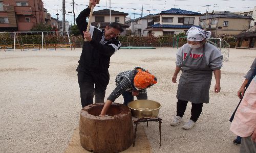 本年が無事に過ごせたことに感謝し、来年も良い年になるよう願い、本日(11日)園庭で餅つきを行いました。 つきたてのお餅はとてもおいしかったようで園児の中にはおかわりをする子も多くいました。