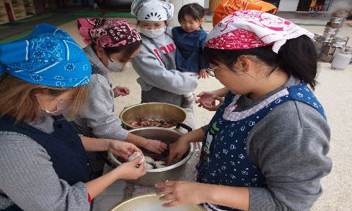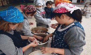 餅が苦手な園児も「幼稚園のお餅は美味しい」と言いながら一口二口は食べていました。