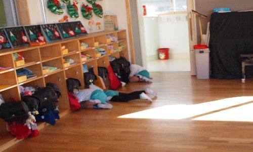 今回は告知なしで放送を流しましたが、訓練を繰り返し行っていた年長組は素早い行動をとることができました。