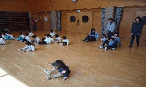 今回は年少つくし組と交流をしながらの運動遊びをしました。