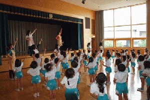 今回は23日に行われる夕涼み会の盆踊りをみんなで踊りました。